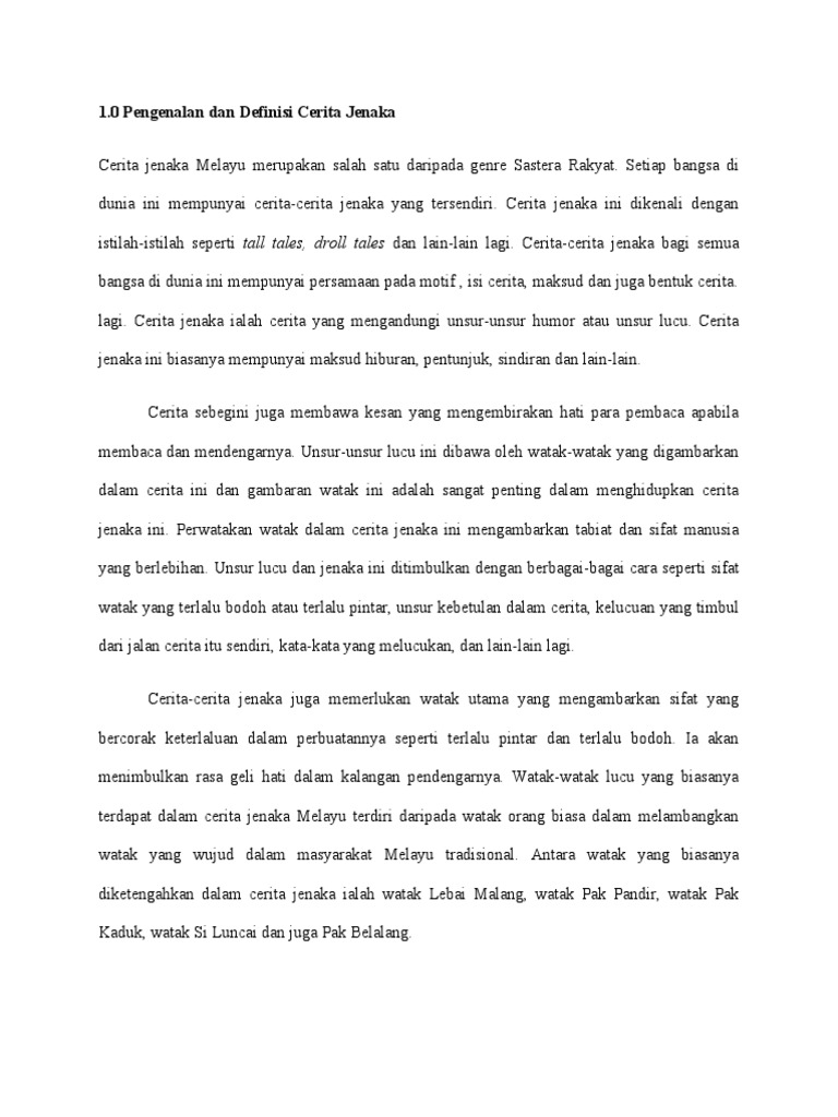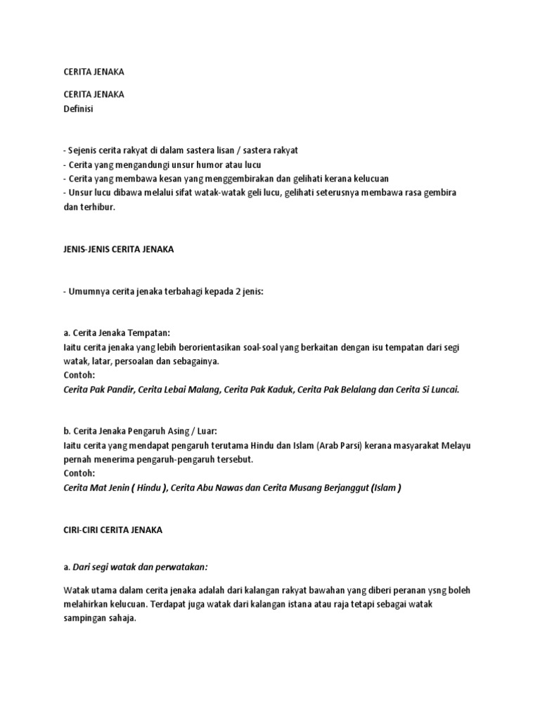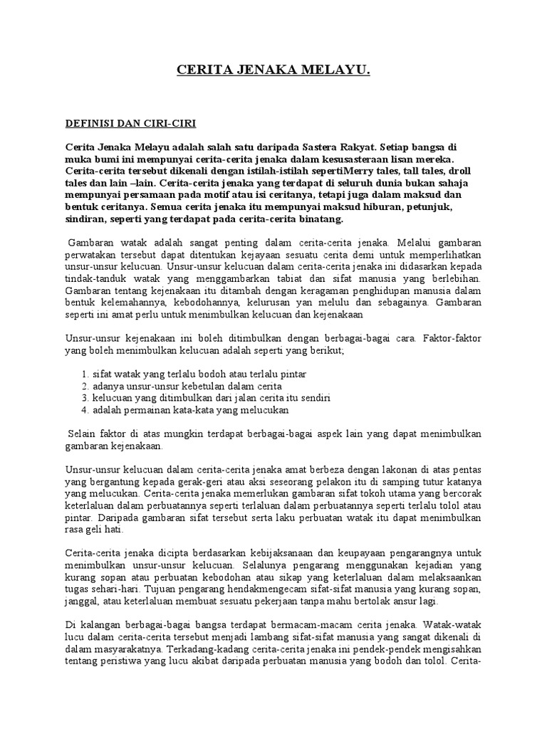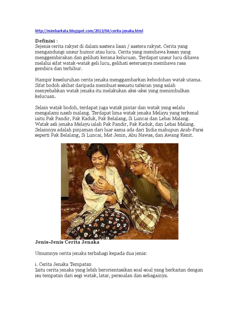 Senarai Cerita Lawak Jenaka Jangan Takut Istilah Komputer Melayu Siapa. Aug 05 2011 Cerita jenaka berbentuk naratif cerita yang memaparkan cerita tentang sifat dan peranan watak utama yang dapat menimbulkan kelucuan kepada khalayak. Oxford University Press 1963.